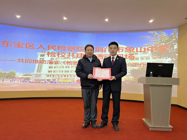 (通讯员 刘群薇 雷艳芳)为贯彻落实最高人民检察院、教育部联合印发《检察官担任法治副校长工作规定》, 1月13日下午,荆门市东宝区检察院党组书记、检察长赵龙一行走进荆门市象山中学,推动检察官担任法治副校长履职尽责。