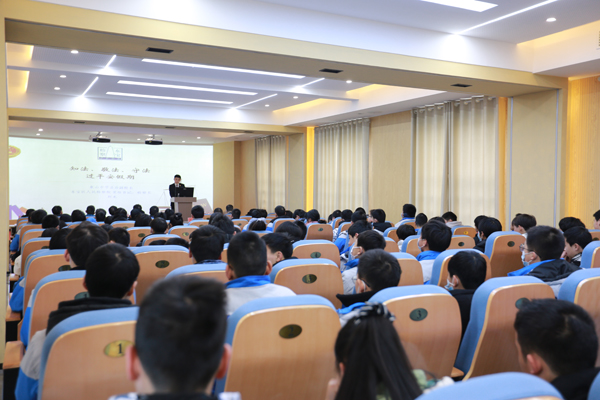 首先,赵龙根据学校工作安排,结合学生特点,以《知法、敬法、守法 过平安假期》为主题给学生们上了第一堂法治教育课。他以“假期怎么嗨?” “如何正确实现上网自由?”提问,迅速吸引了同学们的注意力,通过列数据、看图表、讲案例等多种方式提醒同学们在假期中要拒绝暴力行为,注意预防性侵害以及警惕网络陷阱,并围绕2021年12月24日新通过的《中华人民共和国反有组织犯罪法》进行了普法宣传。