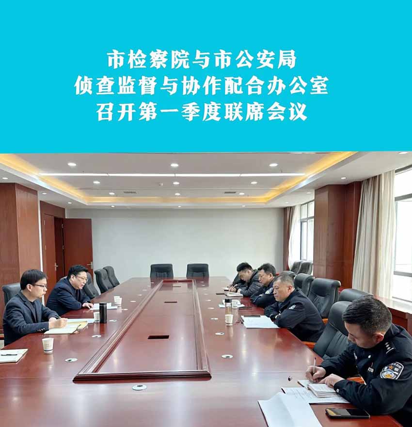 (通讯员 刘洋)为认真贯彻落实《中共中央关于加强新时代检察机关法律监督工作的意见》和《最高检、公安部关于健全完善侦查监督与协作配合机制的意见》,体现能动检察,强化法律监督,加强检察机关与公安机关在刑事诉讼中的协作配合与监督制约,合力解决办案过程中存在的问题,提高办案质效和水平,3月29日,钟祥市检察院与钟祥市公安局侦查监督与协作配合办公室召开第一季度联席会议,推动执法办案工作中的问题力立行立改,该院党组成员、副检察长霍少虹,公安局党组成员李新东等参会。